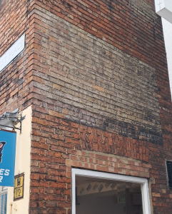 On the wall of the Pop Inn Cafe at 12 Market Place is this very faded sign which bears the word “Plumbing” and some less readable text. A version of it can be seen in a photograph dating from c1900 advertising George Mawer’s plumbing firm