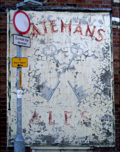 “Batemans Ales” on the wall of the former Cross Keys pub, corner of Queen St and East St. This sign has now been restored to its original condition by HH&HS