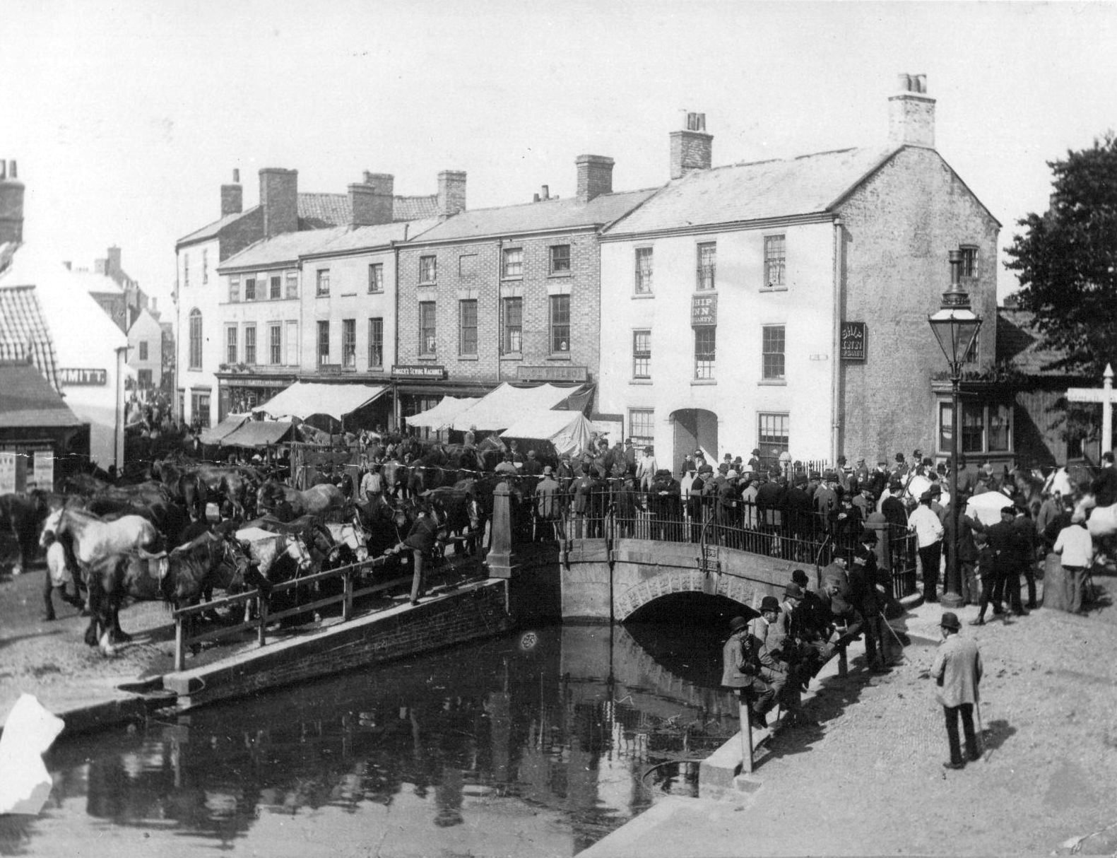 The Horse Fair on the Bull Ring seen from across the Canal’s South Basin in 1890. The Ship Inn is on the right. Photo credit: Horncastle History & Heritage Society’s Town Archive.